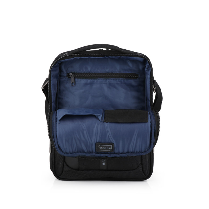 Bandolera para tablet de 10'' Stark con dos compartimentos. Su interior está forrado y acolchado, con organizador. Fabricada en poliéster y piel sintética. Medidas: 24x31x9 cm. Volumne: 5,8L.