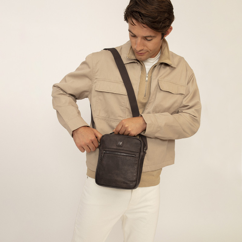 Bandolera Tibet de piel sintética marrón.
