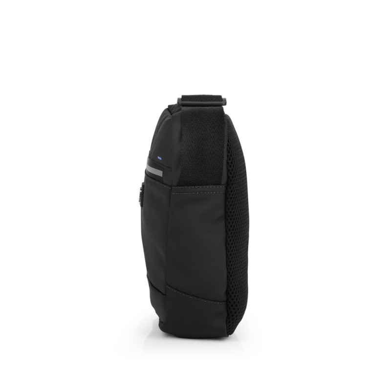 Bandolera de la colección Flash. Fabricada en Poliéster resinado, libre de plásticos PVC. Cuenta con elementos reflectantes. Medidas: 18x22x7 cm.