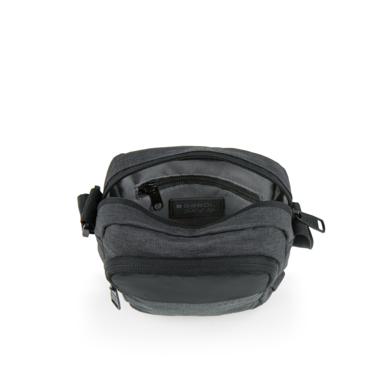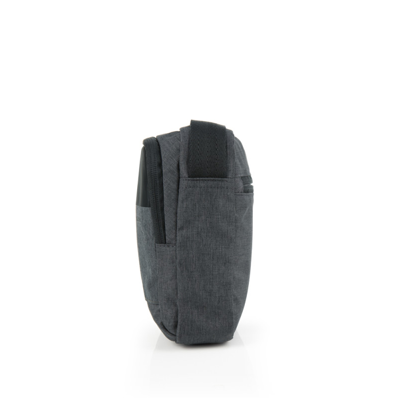 Bandolera pequeña de la colección Liam. Fabricada en Poliéster, libre de plásticos PVC y resistente al agua. Cuenta con un diseño práctico y funcional, con dos compartimentos. Medidas: 15x19x7 cm.