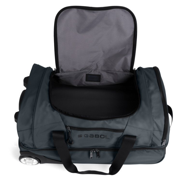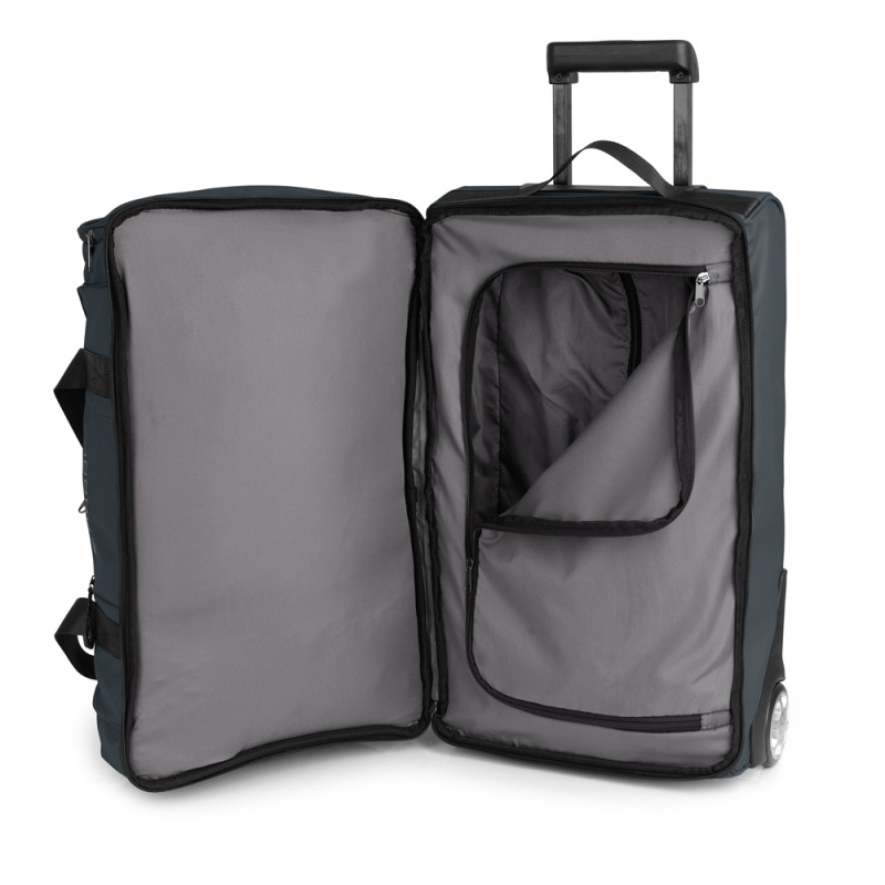 Bolso de ruedas blando, con 2 ruedas, dos departamentos y bolsillo interior. Fabricado en poliéster resinado y piel sintética, compuesto por un forro de alta calidad. Medidas: 55x32x29 cm - Peso: 2,2 kg - Capacidad: 51 L
