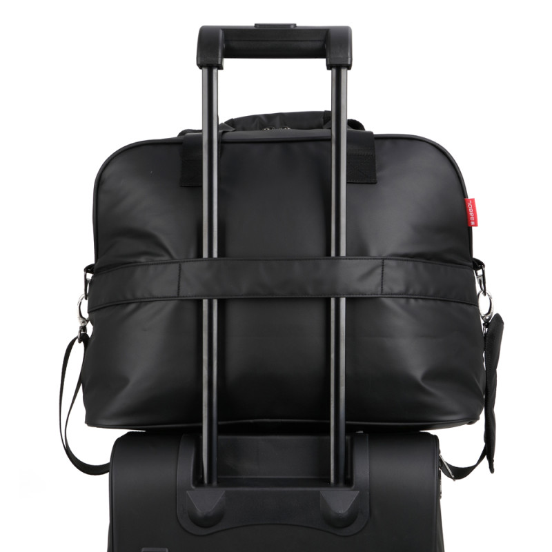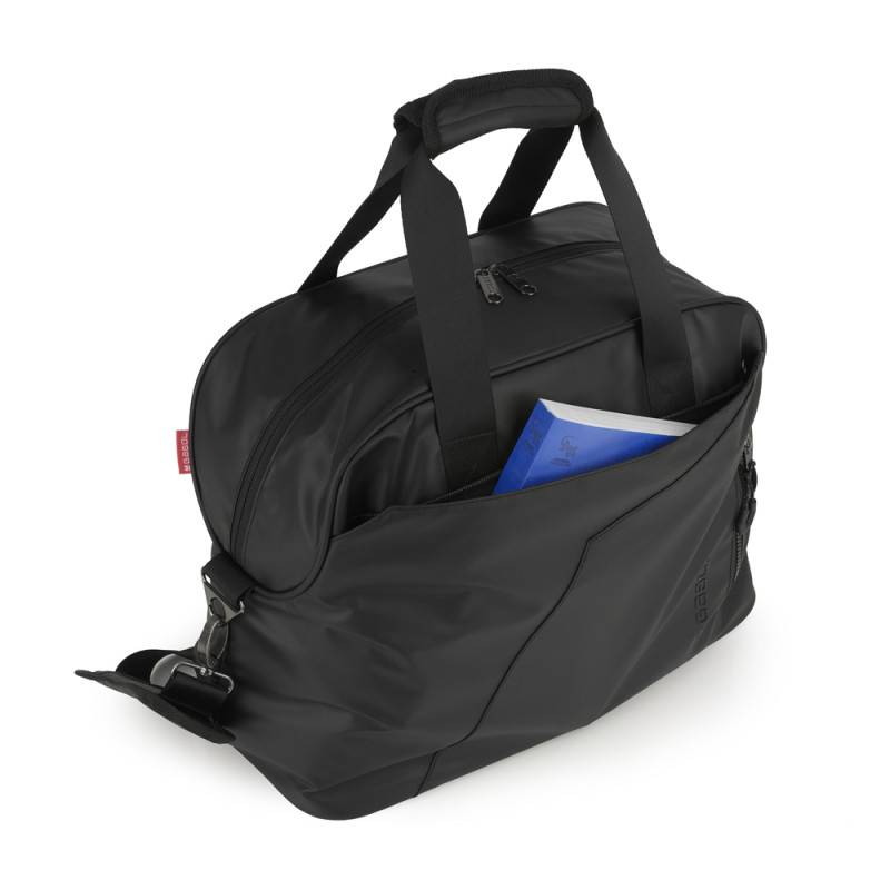Bolso de viaje apto como equipaje de mano * y con acople a maleta. Fabricado en poliéster resinado y piel sintética, compuesto por un forro de alta calidad. Medidas: 40x30x20 cm - Peso: 0,60 kg - Capacidad: 22,8 L. * Confirme las medidas con su compañía aérea previamente.