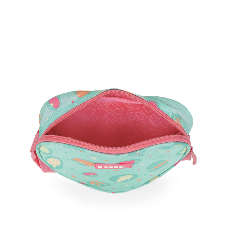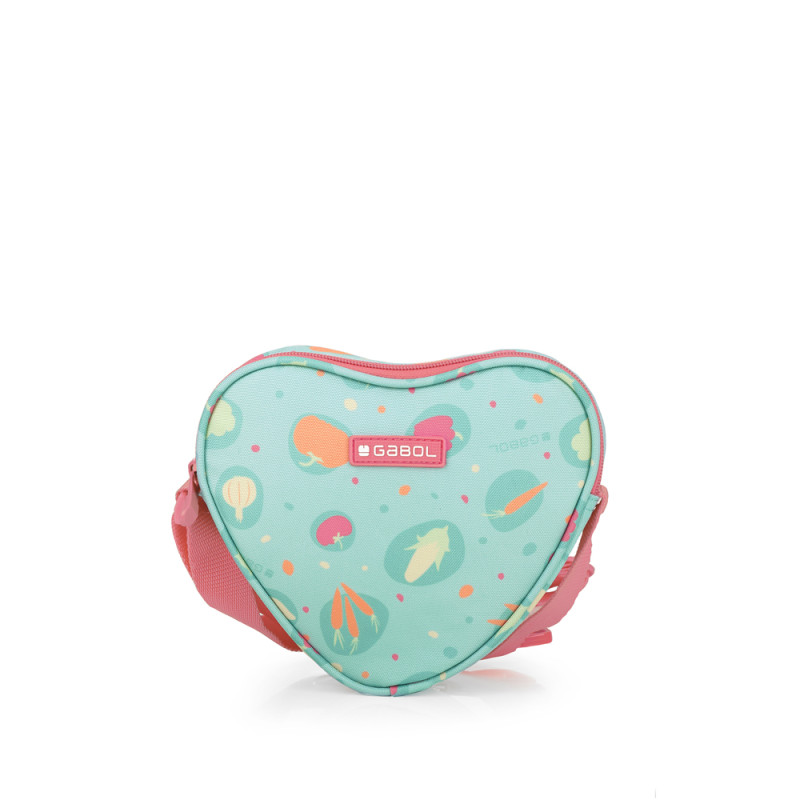 Bolso infantil en forma de corazón con cita ajustable. Fabricado con material libre de PVC.