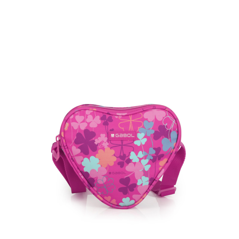 Bolso infantil Gabol CLOVER. Bolso infantil en forma de corazón con cinta ajustable. Fabricado con material libre de PVC. Material resistente al agua. Medidas: 19x16,5x4cm