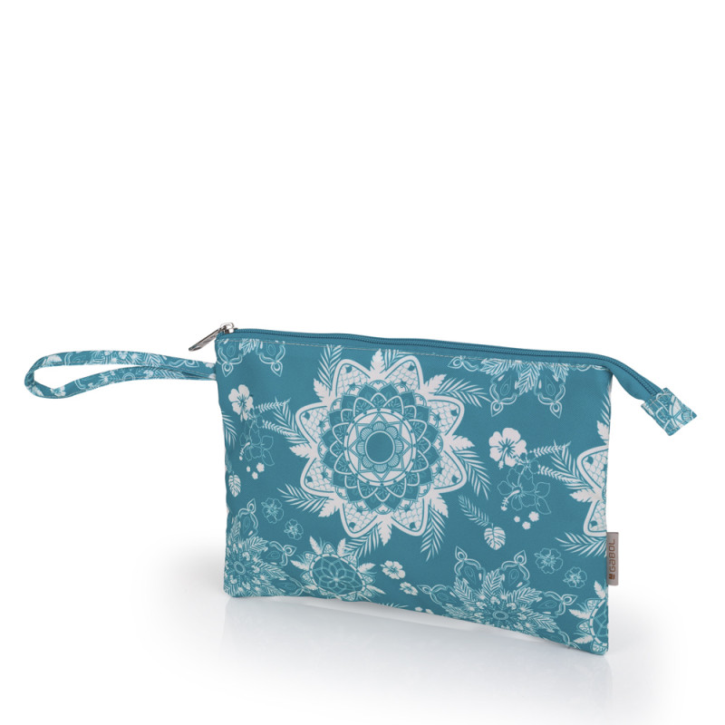 Neceser de playa Samoa de poliéster, turquesa. Resistente con capacidad hasta 0,06 kg, Libre de plásticos PVC. Medidas: 29x20 cm.