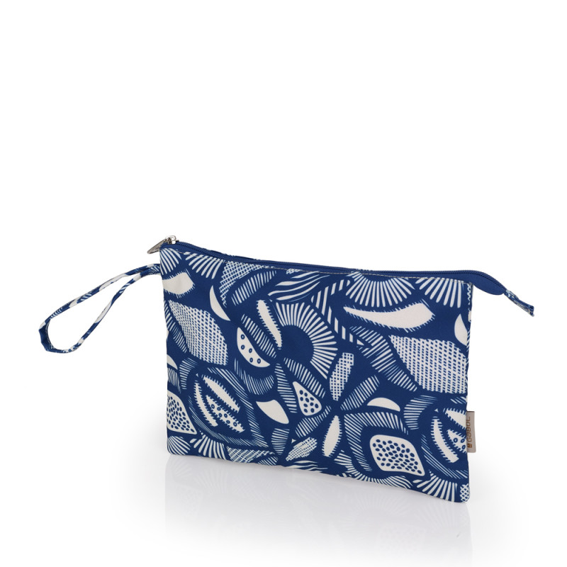 Neceser de playa Fiyi de poliéster, azul. Resistente con capacidad hasta 0,06 kg, Libre de plásticos PVC. Medidas: 29x20 cm.