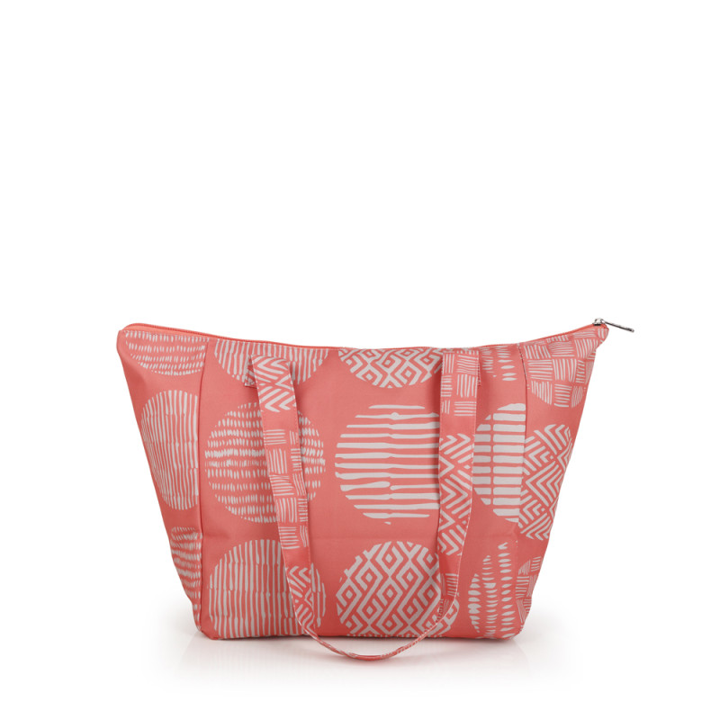 Bolso playa de poliéster, coral. Resistente con capacidad hasta 31,4 L. Libre de plásticos PVC. Medidas: 54x34x21 cm.