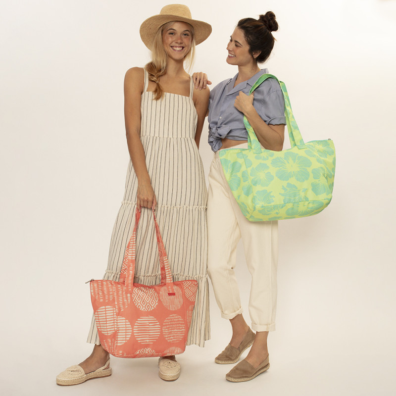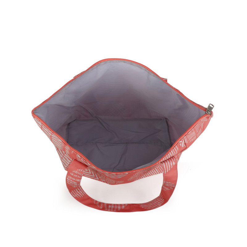 Bolso playa de poliéster, coral. Resistente con capacidad hasta 31,4 L. Libre de plásticos PVC. Medidas: 54x34x21 cm.