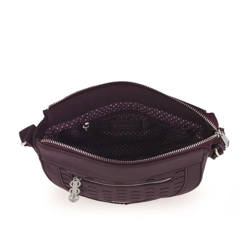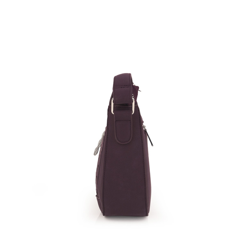 Bolso bandolera de piel sintética, burdeos. Fabricado con materiales libres de PVC. Medidas: 24x20x7 cm