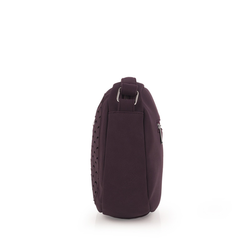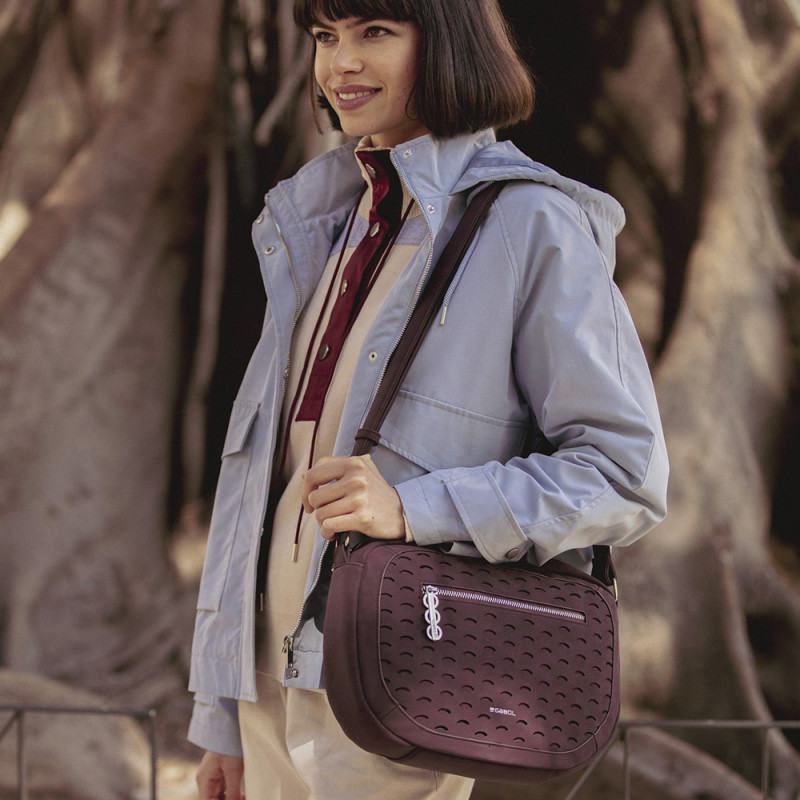 Bolso bandolera de piel sintética, burdeos. Fabricado con materiales libres de PVC. Medidas: 32x22x8 cm