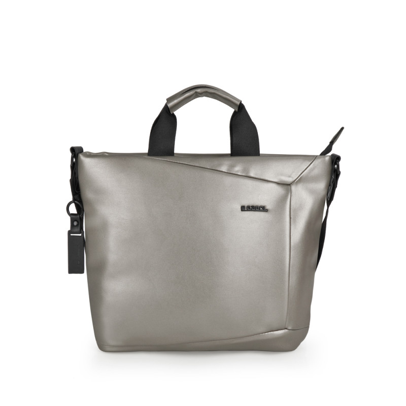 Bolso grande de piel sintética, champán. Fabricado con materiales libres de PVC. Medidas: 37x29x12 cm