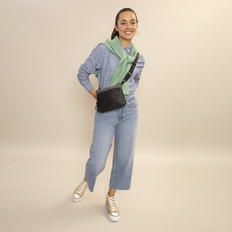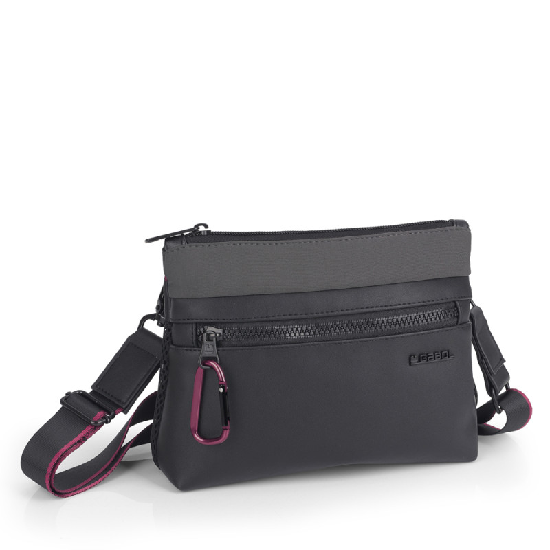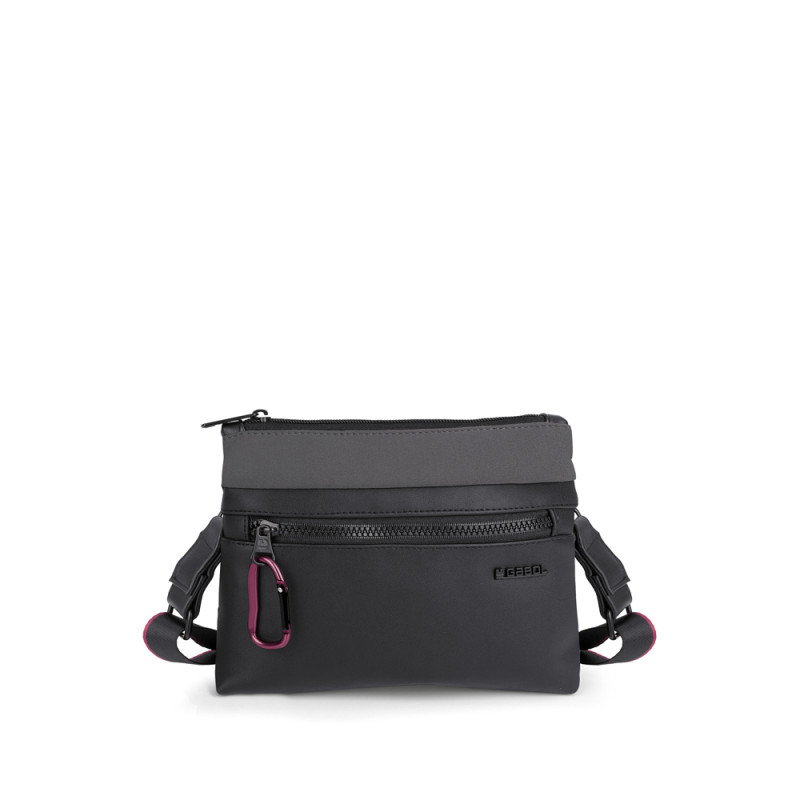 Bolso pequeño de piel sintética y neopreno, negro. Fabricado con materiales libres de PVC. Medidas: 22x16x5 cm