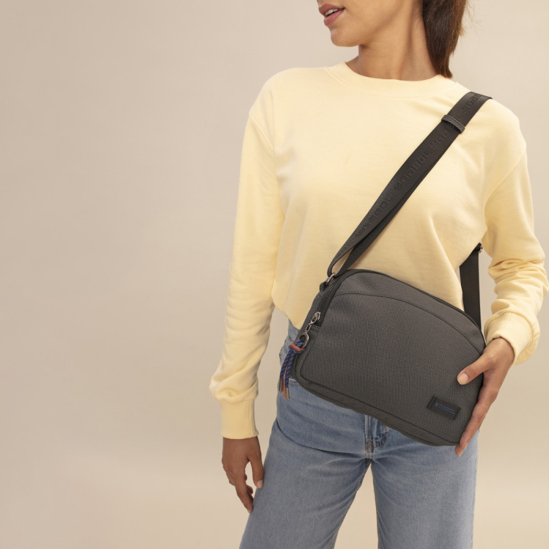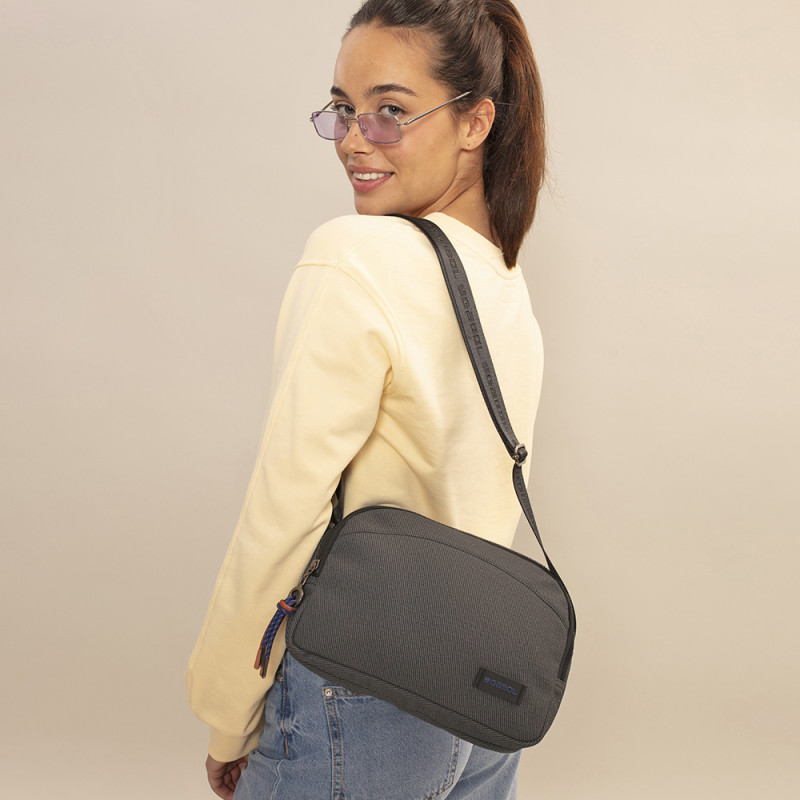 Bolso pequeño de piel sintética, gris. Fabricado con materiales libres de PVC. Medidas: 26x18x8 cm