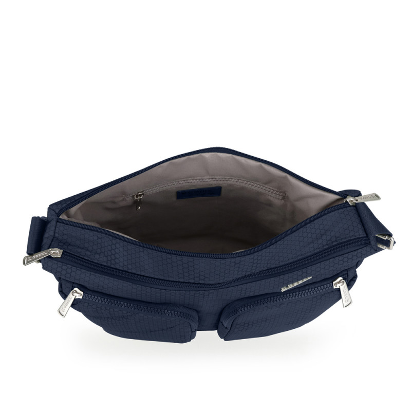 Bolso con 2 compartimentos de poliéster. Material resistente al agua. Fabricado con materiales libres de plásticos PVC. Medidas: 33x23x10 cm.