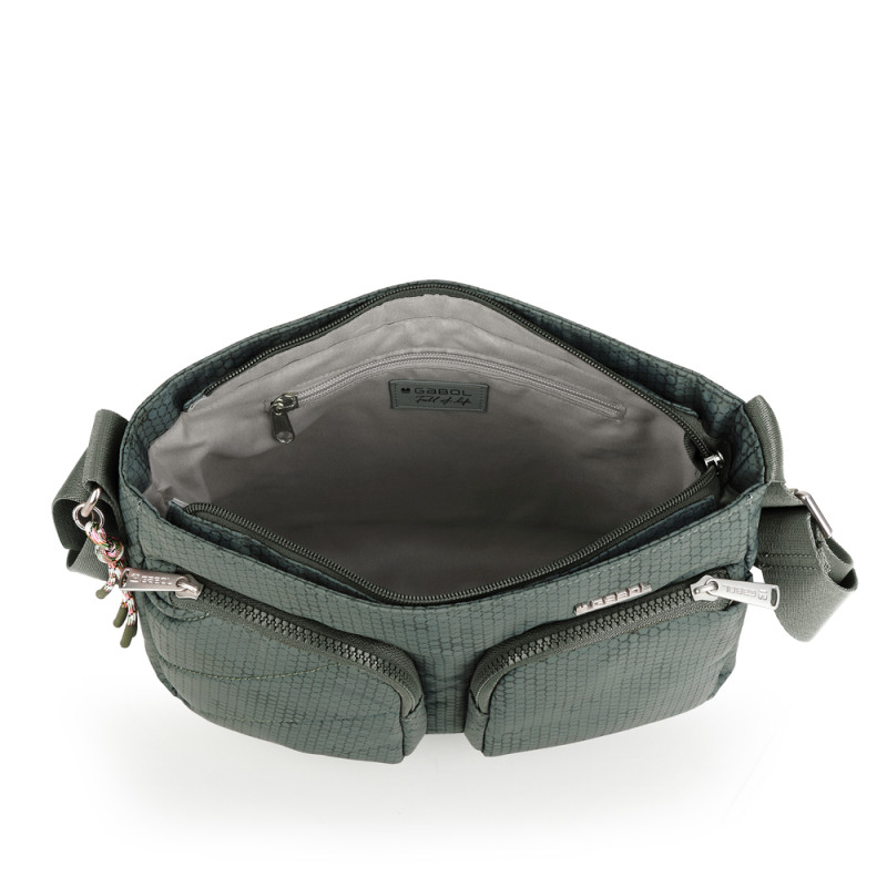 Bolso mediano de la colección Aitana. Fabricado en Poliéster, libre de plásticos PVC y resistente al agua. Medidas: 30x23x8 cm.