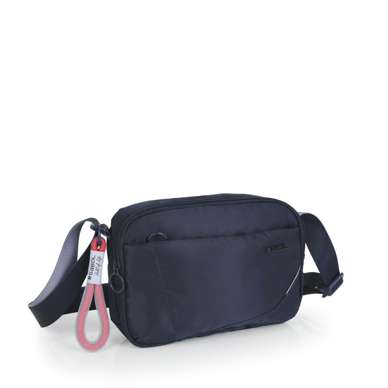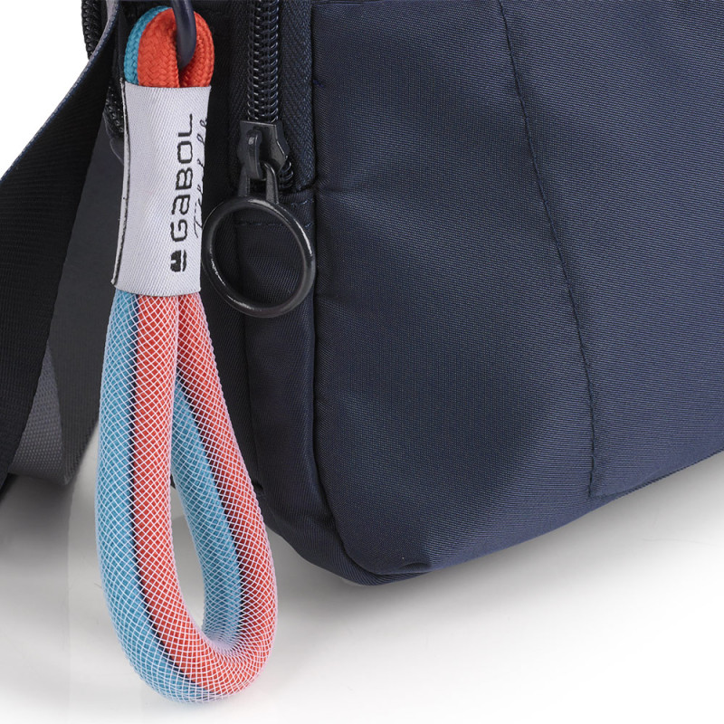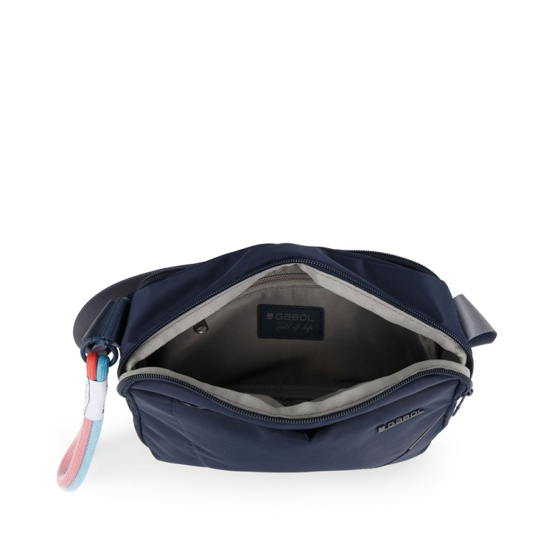 Bolso con dos compartimentos de nylon, azul marino. Material resistente al agua. Fabricado con materiales libres de plásticos PVC. Medidas: 24x16x8 cm.