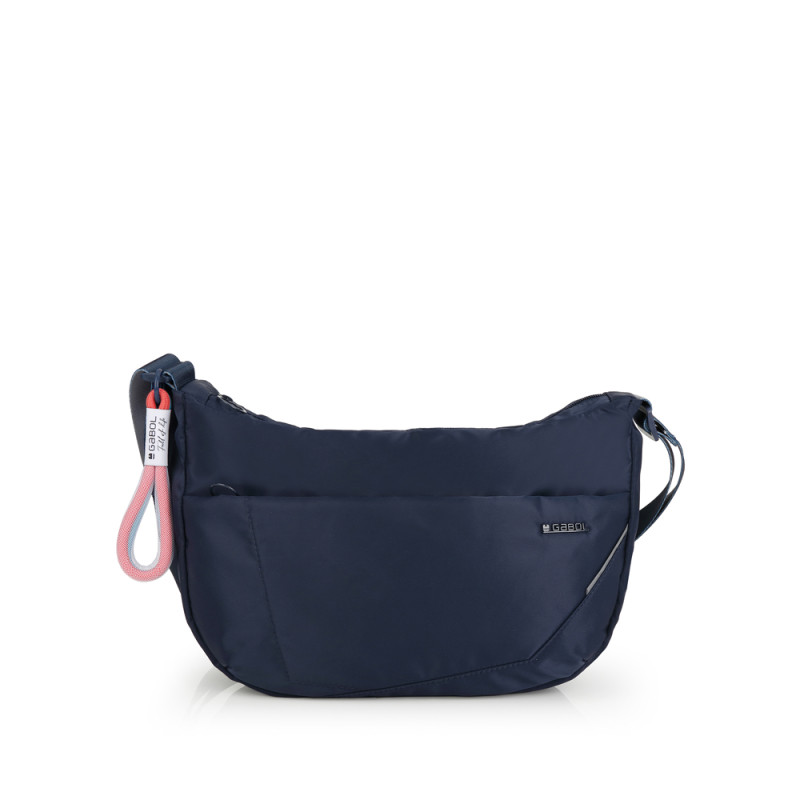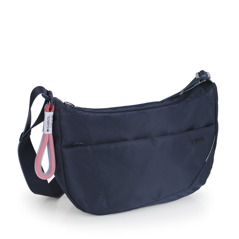 Bolso góndola de nylon, azul marino. Material resistente al agua. Fabricado con materiales libres de plásticos PVC. Medidas: 33x24x11 cm.