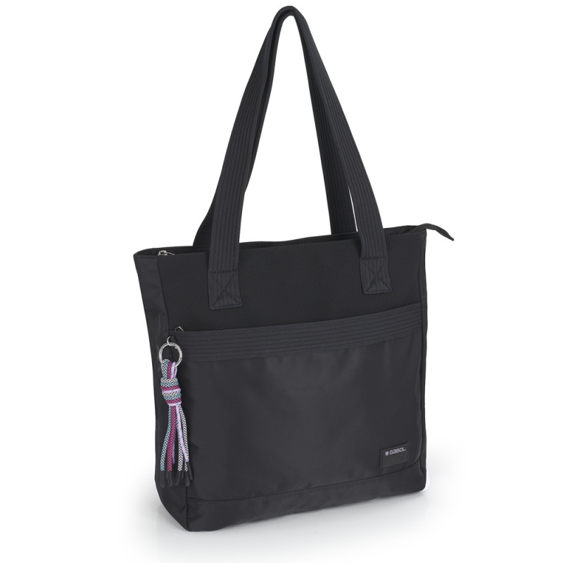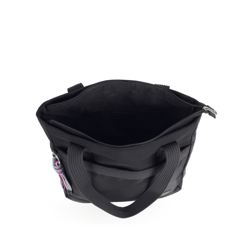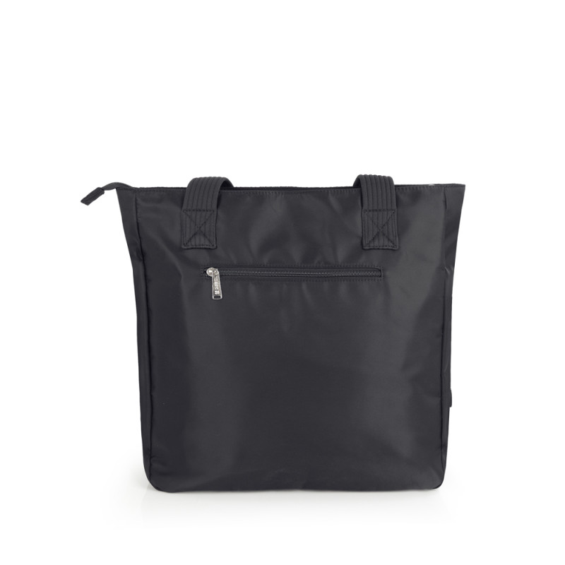 Bolso shopper de nylon, negro. Material resistente al agua. Fabricado con materiales libres de plásticos PVC. Medidas: 36x37x13 cm.