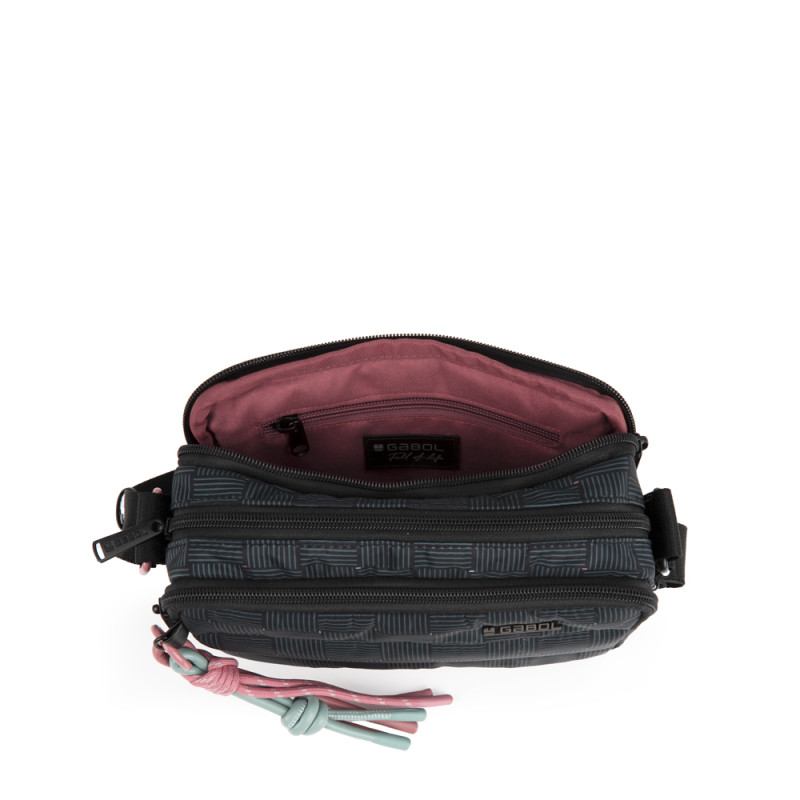 Bolso pequeño de 3 compartimentos de la colección HANAE diseñado para destacar tu estilo y acompañarte en cada momento de la semana. Con una capacidad de 2.4 litros y un peso de solo 0.24 kg, es ideal para llevar lo esencial sin renunciar a la comodidad. Sus dimensiones (21 x 13 x 9 cm ) lo hacen perfecto para adaptarse a tu ritmo de vida, ya sea en la ciudad, en una escapada o en la rutina diaria. Además es resistente al agua. Un accesorio práctico, ligero y con el toque de diseño que marca la diferencia. Conquista el día con estilo y funcionalidad. Libre de plástico PVC.