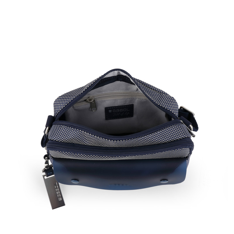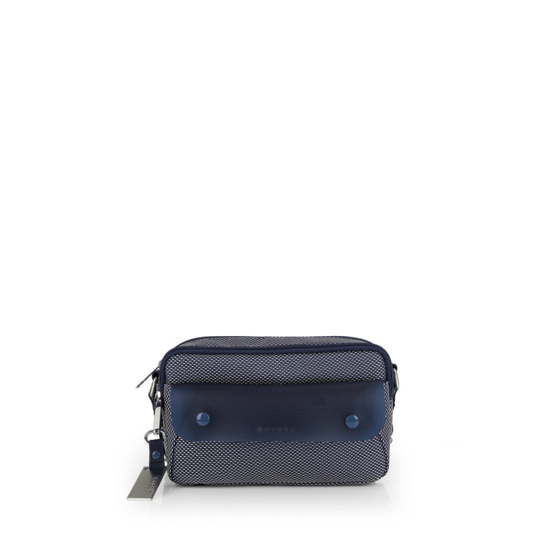Bolso pequeño con dos compartimentos de la colección Pamela. Fabricado en Poliéster y TPU, libre de plásticos PVC y resistente al agua. Medidas: 22x14x9 cm.