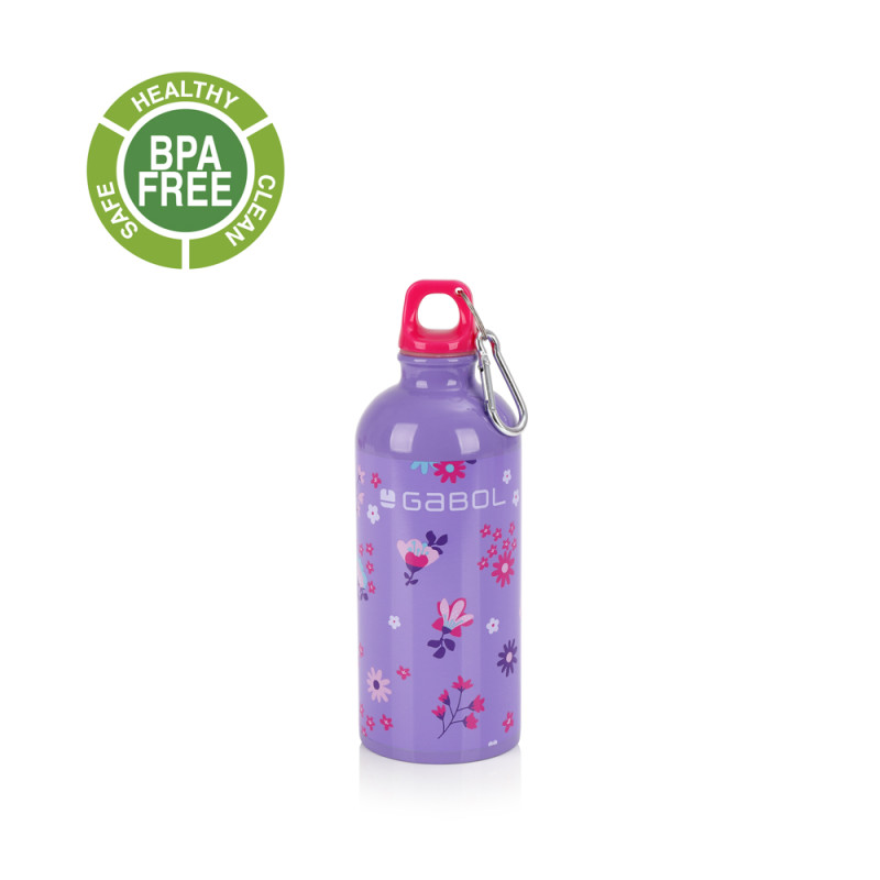 Botella de acero inoxidable libre de BPA de 600ml. Cierre de rosca con mosquetón para poder engancharla. Fabricada con material libre de PVC. Medidas: 7x21x7 cm