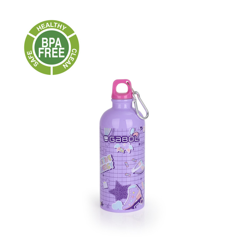 Botella de acero inoxidable Gabol FUNNY. Botella de acero inoxidable libre de BPA de 600ml. Cierre de rosca con mosquetón para poder engancharla. Fabricada con material libre de PVC. Medidas: 7x21x7cm