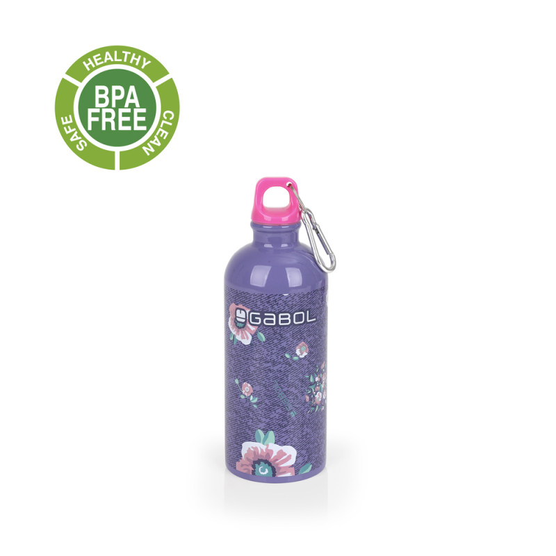 Botella de acero inoxidable Gabol LILY. Botella de acero inoxidable libre de BPA de 600ml. Cierre de rosca con mosquetón para poder engancharla. Fabricada con material libre de PVC. Medidas: 7x21x7cm