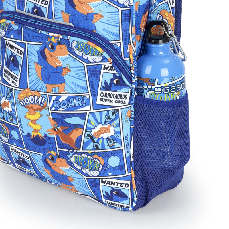 Botella de acero inoxidable Gabol DINO. Botella de acero inoxidable libre de BPA de 600ml. Cierre de rosca con mosquetón para poder engancharla. Fabricada con material libre de PVC. Medidas: 7x21x7cm