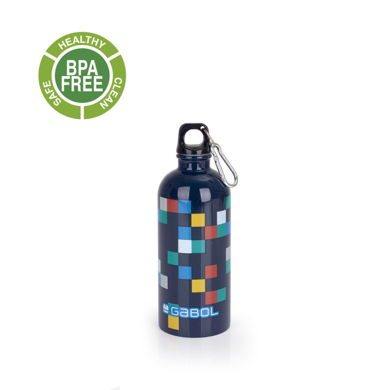 Botella de acero inoxidable Gabol CUBIK. Botella de acero inoxidable libre de BPA de 600ml. Cierre de rosca con mosquetón para poder engancharla. Fabricada con material libre de PVC. Medidas: 7x21x7cm
