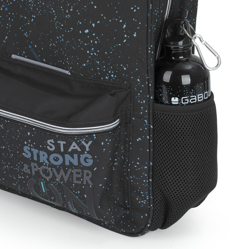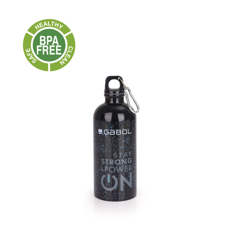Botella de acero inoxidable Gabol GALAXY. Botella de acero inoxidable libre de BPA de 600ml. Cierre de rosca con mosquetón para poder engancharla. Fabricada con material libre de PVC. Medidas: 7x21x7cm