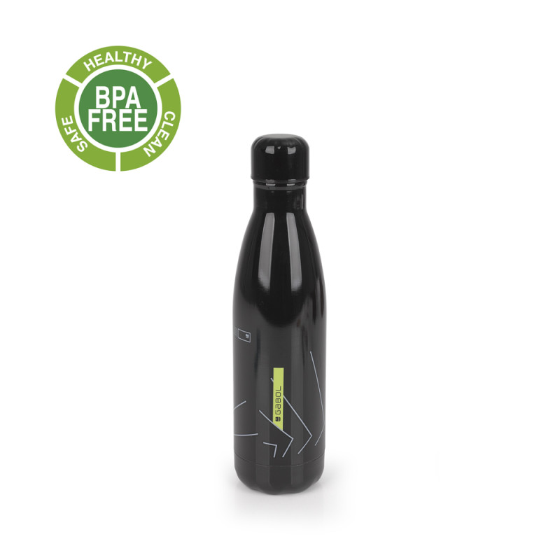 Botella térmica de acero inoxidable Gabol PANTHER. Botella térmica de acero inoxidable libre de BPA de 500ml. Cierre de rosca. Fabricada con material libre de PVC. Medidas: 7x27x7cm.