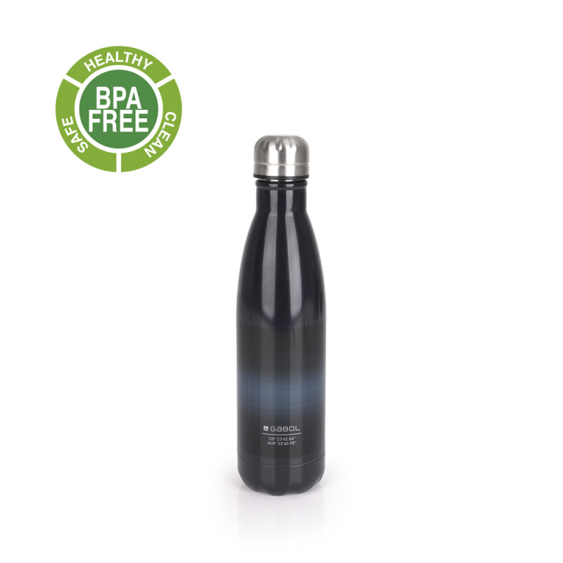 Botella térmica de acero inoxidable Gabol LION. Botella térmica de acero inoxidable libre de BPA de 500ml. Cierre de rosca. Fabricada con material libre de PVC. Medidas: 7x27x7cm