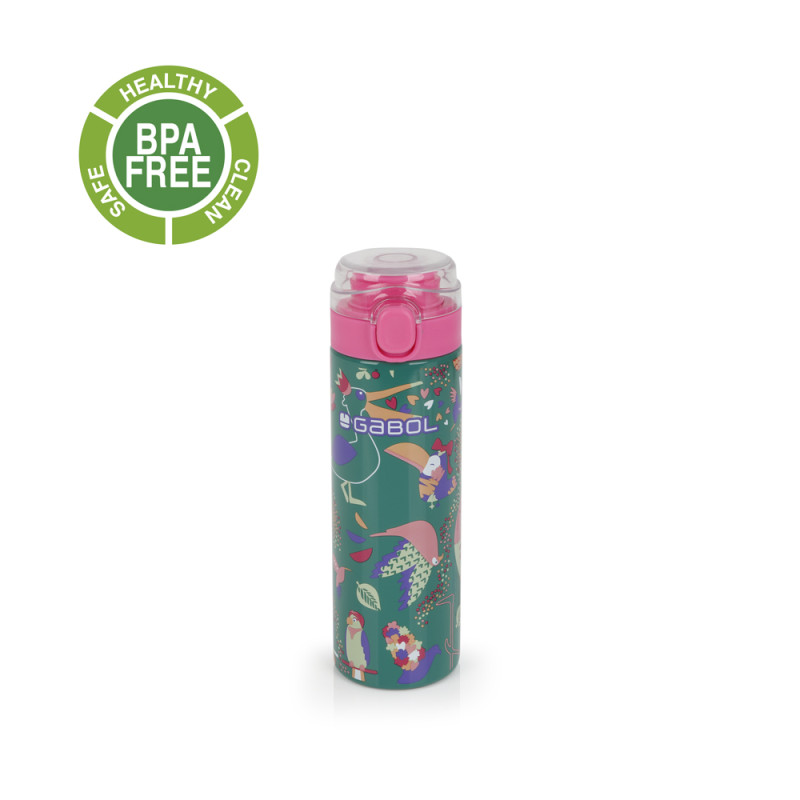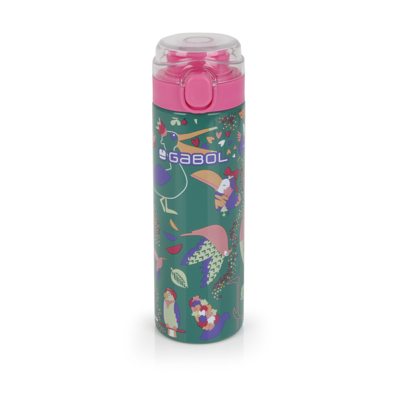 Botella de acero inoxidable Gabol VIDA. Cuenta con un sistema de bloqueo y una base antideslizante. Capacidad de 600ml. Libre de PVC. Medidas: 6,5x22,5x6,5cm.