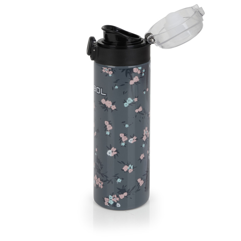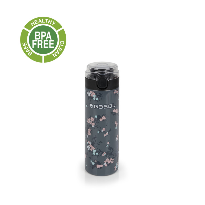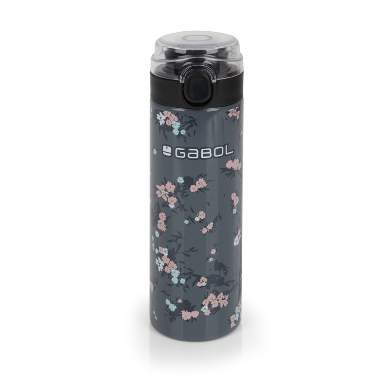 Botella de acero inoxidable Gabol SECRET. Cuenta con un sistema de bloqueo y una base antideslizante. Capacidad de 600ml. Libre de PVC. Medidas: 6,5x22,5x6,5cm.
