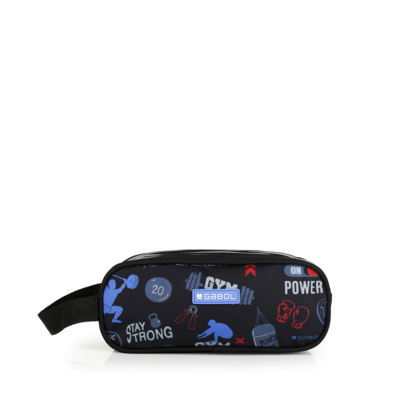 Estuche triple con asa. Fabricado con material libre de PVC. Material impermeable. Medidas: 22x9x9 cm