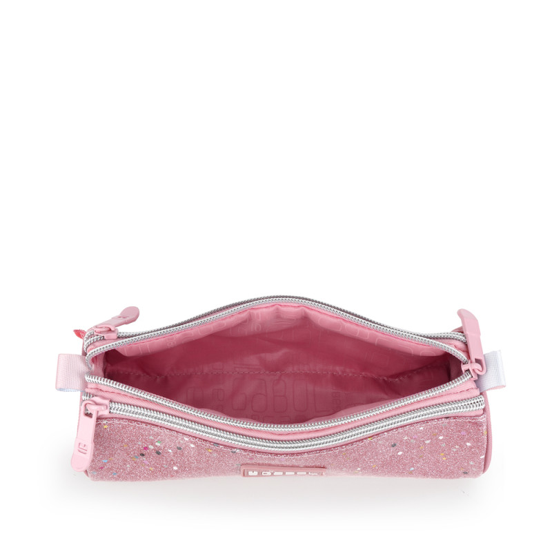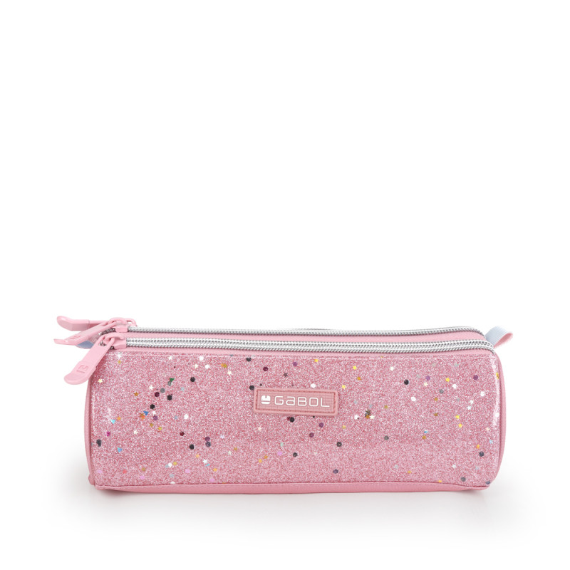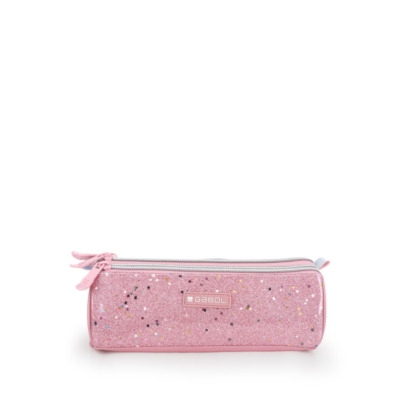 Estuche triple Gabol GLAM. Fabricado en poliéster y piel sintética con purpurina. Es resistente al agua. Medidas: 22x7x7cm.