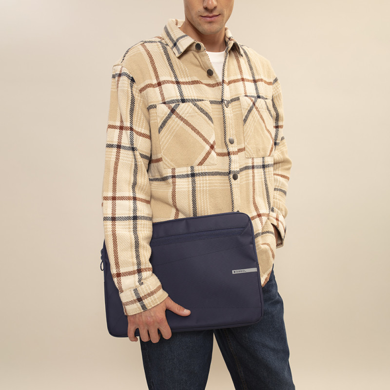 Funda para portátil 15,6'' de poliéster resinado, azul. Incluye forro de alta clidad, acolchado y con organizador para portátil. Fabricado con material libre de plásticos PVC. Medidas: 39x27x2 cm. Volumen: 2,6 L.