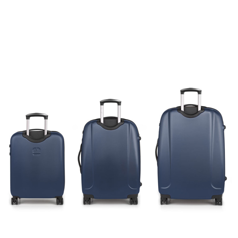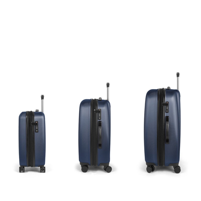 Juego de 3 maletas (Cabina, Mediana y Grande) rígidas, expandibles y 4 ruedas dobles multidirección. Fabricadas en ABS. Su interior está compuesto por un forro de alta calidad con separador y bolsillo. Cerradura TSA. Medidas sin y con expandible: Maleta Cabina: 55x39x21/25 cm - Peso: 2,8 kg - Capacidad: 35,7/42,5 L. Maleta Mediana: 67x48x27/30,5 cm - Peso: 3,8 kg - Capacidad: 70/79 L. Maleta Grande: 77x54x29/32,5 cm - Peso: 4,6 kg - Capacidad: 100/112 L.