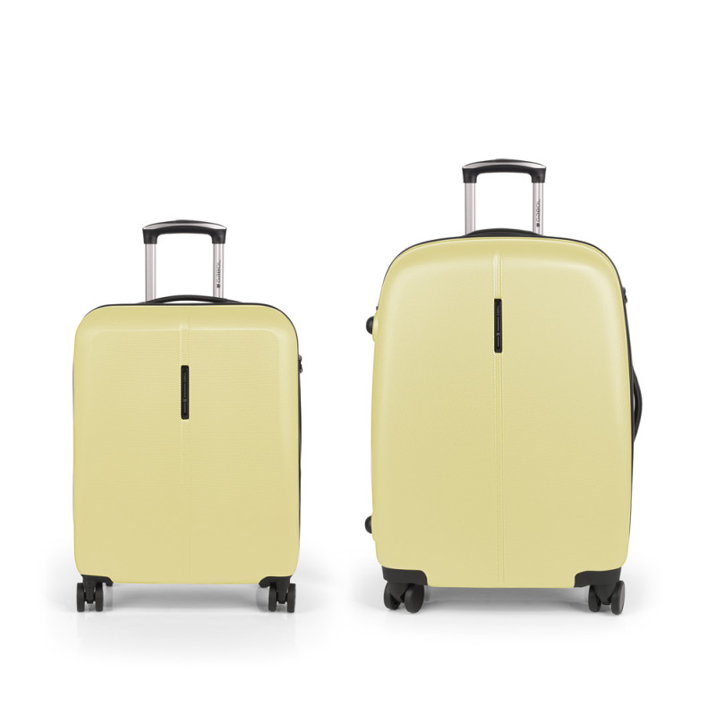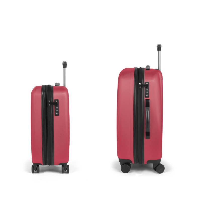Juego de 2 maletas (Cabina y Mediana) rígidas, expandibles y 4 ruedas dobles multidirección. Fabricadas en ABS. Su interior está compuesto por un forro de alta calidad con separador y bolsillo. Cerradura TSA. Medidas sin y con expandible: Maleta Cabina: 55x39x21/25 cm - Peso: 2,8 kg - Capacidad: 35,7/42,5 L. Maleta Mediana: 67x48x27/30,5 cm - Peso: 3,8 kg - Capacidad: 70/79 L.