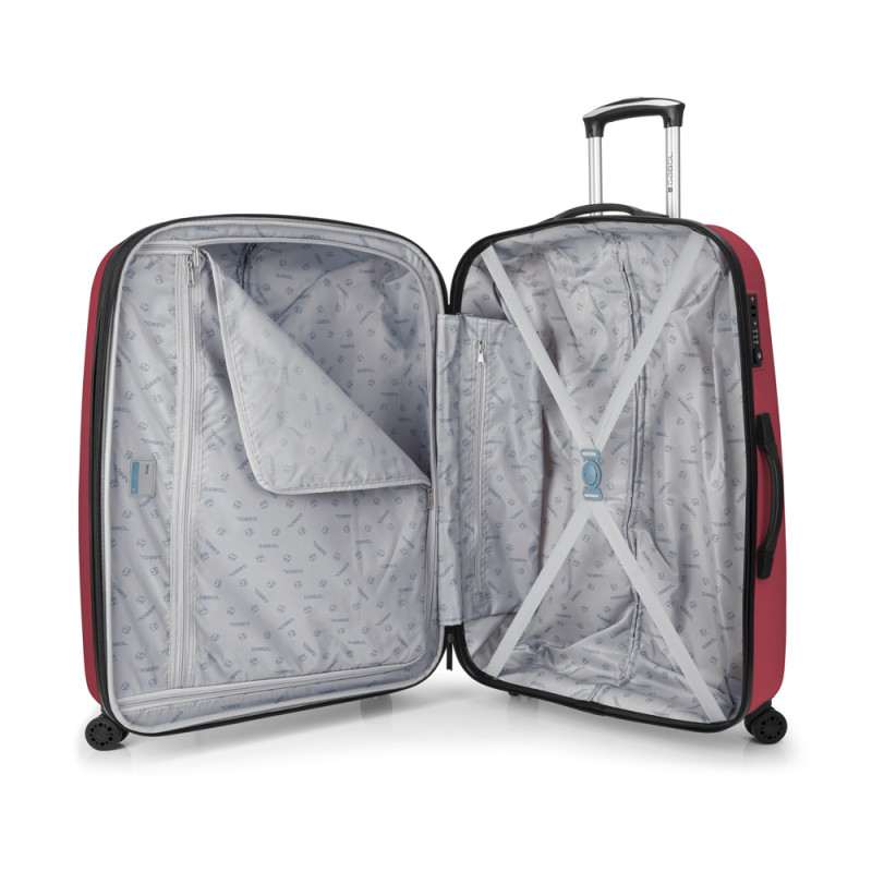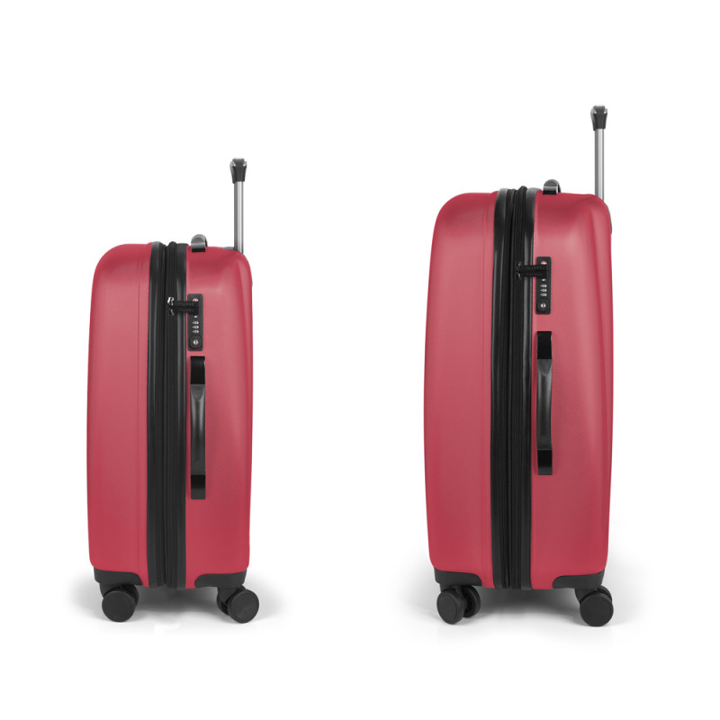 Juego de 2 maletas (Mediana y Grande) rígidas, expandibles y 4 ruedas dobles multidirección. Fabricadas en ABS. Su interior está compuesto por un forro de alta calidad con separador y bolsillo. Cerradura TSA. Medidas sin y con expandible: Maleta Mediana: 67x48x27/30,5 cm - Peso: 3,8 kg - Capacidad: 70/79 L. Maleta Grande: 77x54x29/32,5 cm - Peso: 4,6 kg - Capacidad: 100/112 L.
