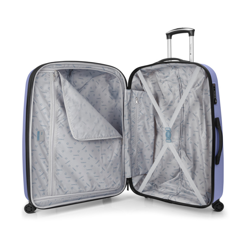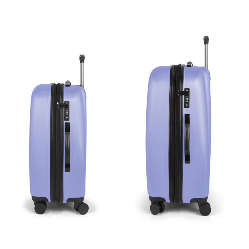 Juego de 2 maletas (Mediana y Grande) rígidas, expandibles y 4 ruedas dobles multidirección. Fabricadas en ABS. Su interior está compuesto por un forro de alta calidad con separador y bolsillo. Cerradura TSA. Medidas sin y con expandible: Maleta Mediana: 67x48x27/30,5 cm - Peso: 3,8 kg - Capacidad: 70/79 L. Maleta Grande: 77x54x29/32,5 cm - Peso: 4,6 kg - Capacidad: 100/112 L.