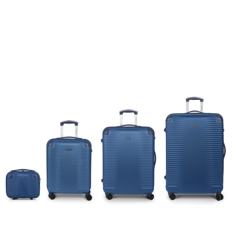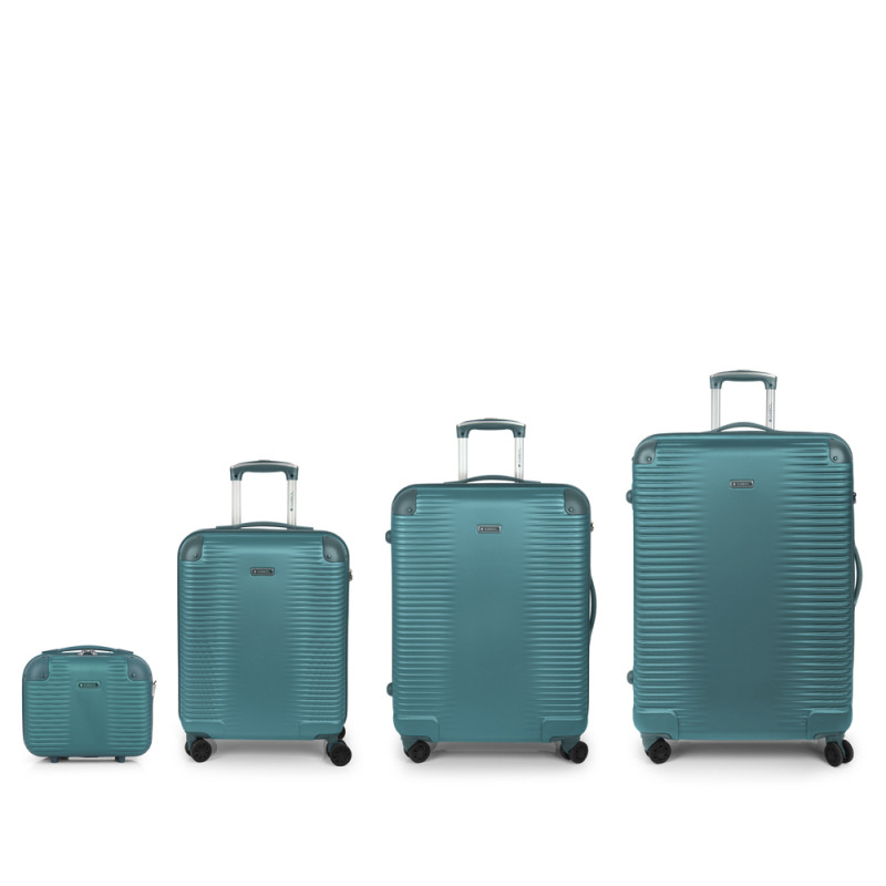 Juego de 3 maletas (Cabina, Mediana y Grande) rígidas, expandibles y 4 ruedas dobles multidirección. Fabricadas en ABS. Su interior está compuesto por un forro de alta calidad de material reciclado (RPET) con separador y bolsillo. Cerradura TSA. Medidas sin y con expandible: Maleta Cabina: 55x40x22/25 cm - Peso: 2,7 kg - Capacidad: 39,7/45 L. Maleta Mediana: 66x48x27/30 cm - Peso: 3,8 kg - Capacidad: 68,8/77,9 L. Maleta Grande: 77x55x33/35 cm - Peso: 4,6 kg - Capacidad: 111,8/118,7 L. Neceser: 28x30x18 cm - Peso: 1 Kg - Capacidad: 12 L.
