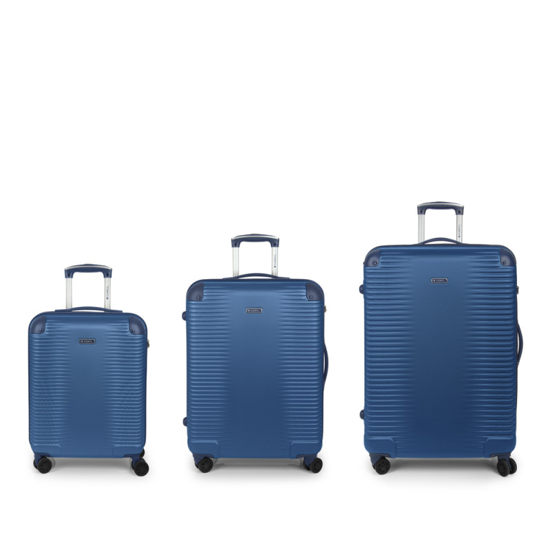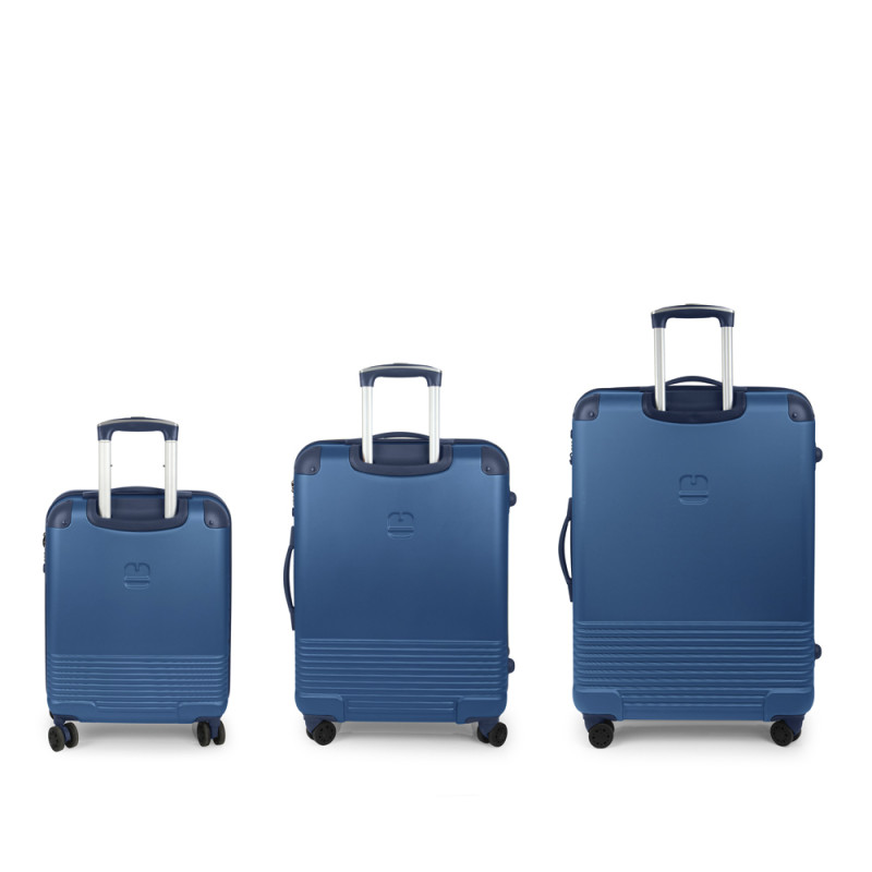 Juego de 3 maletas (Cabina, Mediana y Grande) rígidas, expandibles y 4 ruedas dobles multidirección. Fabricadas en ABS. Su interior está compuesto por un forro de alta calidad de material reciclado (RPET) con separador y bolsillo. Cerradura TSA. Medidas sin y con expandible: Maleta Cabina: 55x40x22/25 cm - Peso: 2,7 kg - Capacidad: 39,7/45 L. Maleta Mediana: 66x48x27/30 cm - Peso: 3,8 kg - Capacidad: 68,8/77,9 L. Maleta Grande: 77x55x33/35 cm - Peso: 4,6 kg - Capacidad: 111,8/118,7 L.