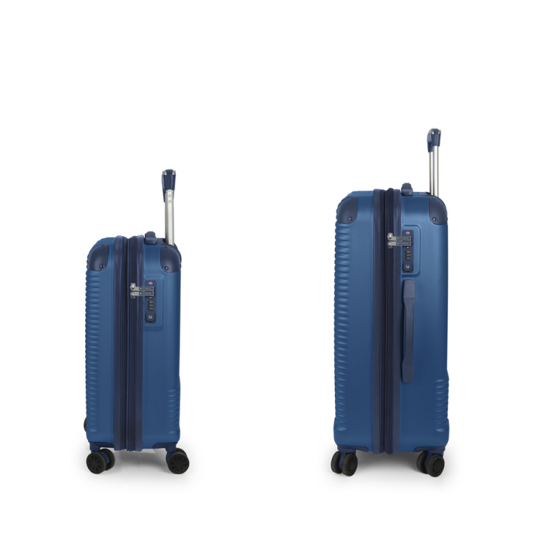 Juego de 2 maletas (Cabina y Mediana) rígidas, expandibles y 4 ruedas dobles multidirección. Fabricadas en ABS. Su interior está compuesto por un forro de alta calidad de material reciclado (RPET) con separador y bolsillo. Cerradura TSA. Medidas sin y con expandible: Maleta Cabina: 55x40x22/25 cm - Peso: 2,7 kg - Capacidad: 39,7/45 L. Maleta Mediana: 66x48x27/30 cm - Peso: 3,8 kg - Capacidad: 68,8/77,9 L.