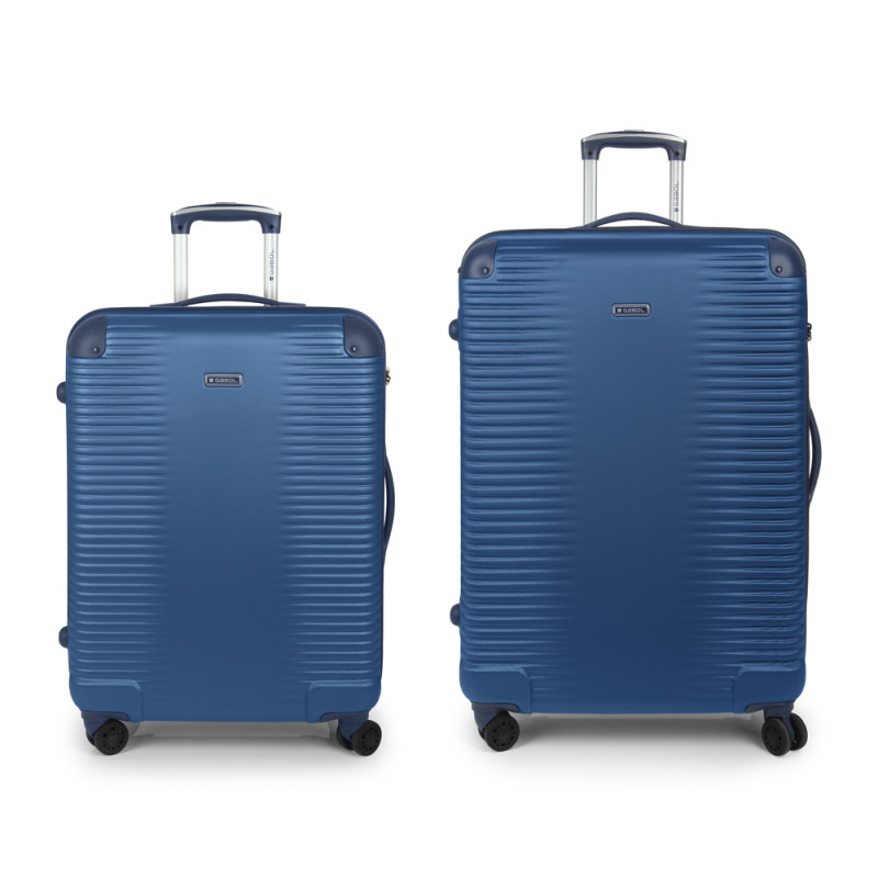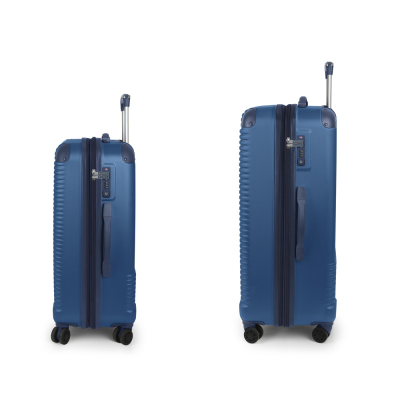 Juego de 2 maletas (Mediana y Grande) rígidas, expandibles y 4 ruedas dobles multidirección. Fabricadas en ABS. Su interior está compuesto por un forro de alta calidad de material reciclado (RPET) con separador y bolsillo. Cerradura TSA. Medidas sin y con expandible: Maleta Mediana: 66x48x27/30 cm - Peso: 3,8 kg - Capacidad: 68,8/77,9 L. Maleta Grande: 77x55x33/35 cm - Peso: 4,6 kg - Capacidad: 111,8/118,7 L. Neceser: 28x30x18 cm - Peso: 1 Kg - Capacidad: 12 L.