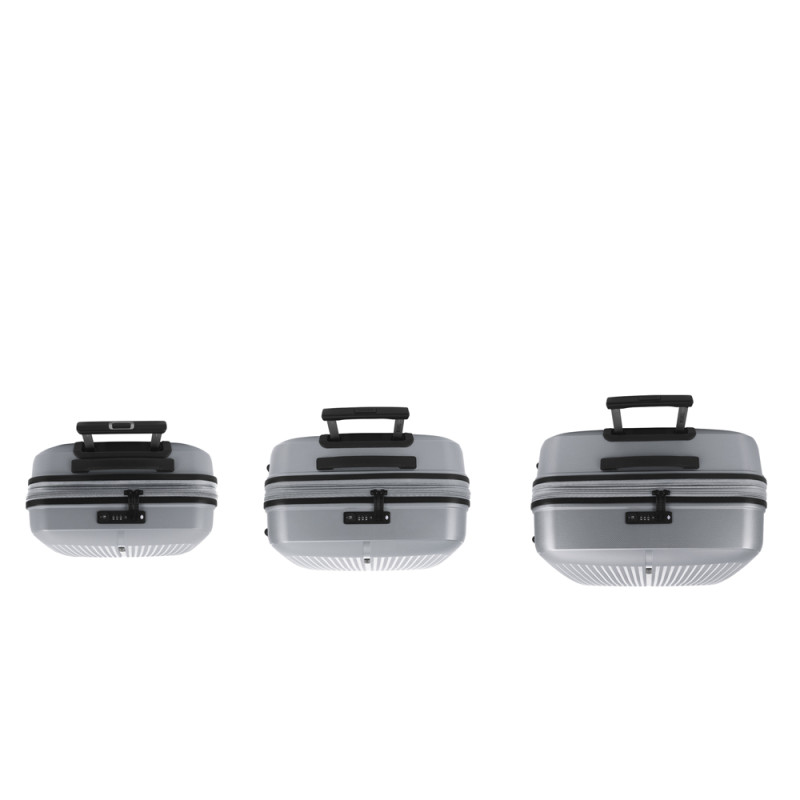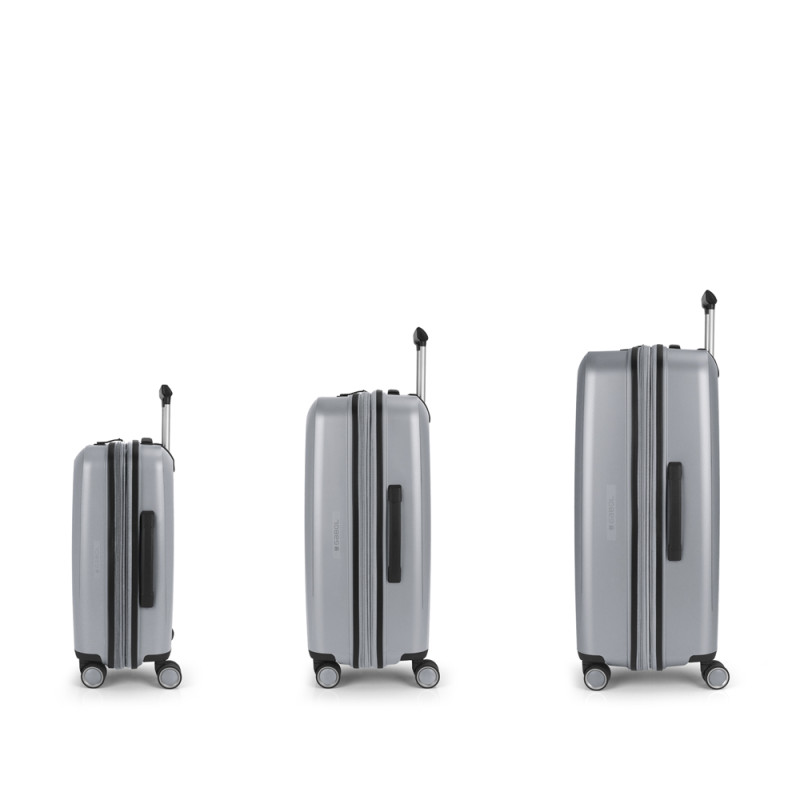 Juego de 3 maletas (Cabina, Mediana y Grande) rígidas y 4 ruedas dobles multidirección. Expandibles en todos los tamaños. Fabricadas en Polipropileno. Su interior esta compuesto por un forro de material reciclado, con doble separador y bolsllos. Cremallera de seguridad. Cerradura TSA. 10 años de garantía. Medidas sin y con expandible: Maleta Cabina: 40x55x22/25cm - Peso: 2,8 kg - Capacidad: 41,7/47,4 L. Maleta Mediana: 45x65x27/30 cm - Peso: 3,4 kg - Capacidad: 70/77,8 L. Maleta Grande: 51x75x31/34 cm - Peso: 4,5 kg - Capacidad: 109/119,6 L.