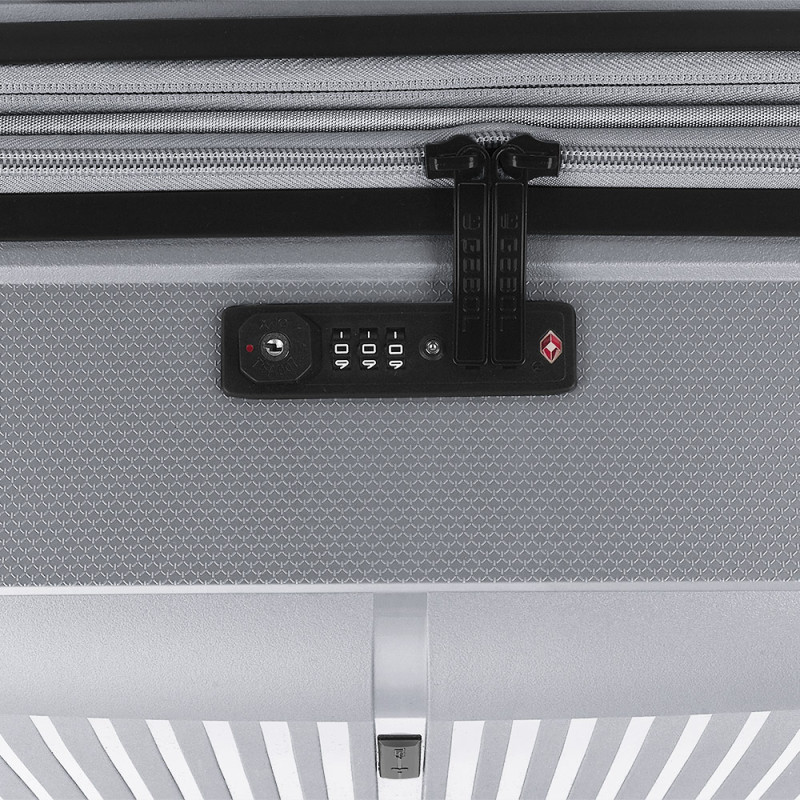 - ASA LATERAL CABINA EXPANDIBLE FORRO: ESTAMPADO GARANTÍA: GARANTÍA 10 AÑOS LIGERO MATERIAL FORRO: MATERIAL RECICLADO RPET MODELO CERRADURA: CB-60A SEGURIDAD: CERRADURA TSA SEPARADOR: DOBLE SISTEMA DE CIERRE: CREMALLERA SEGURIDAD SISTEMA DE RUEDAS: 4 RUEDAS DOBLES