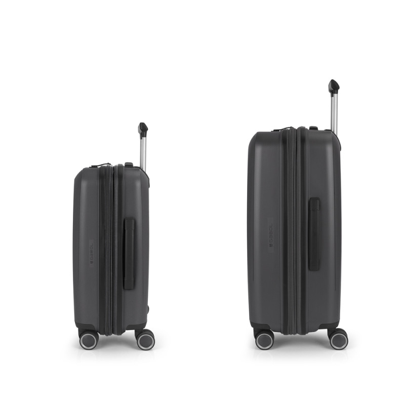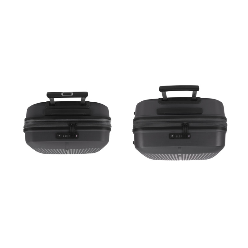 Juego de 2 maletas (Cabina y Mediana) rígidas y 4 ruedas dobles multidirección. Expandibles en todos los tamaños. Fabricadas en Polipropileno. Su interior esta compuesto por un forro de material reciclado, con doble separador y bolsllos. Cremallera de seguridad. Cerradura TSA. 10 años de garantía. Medidas sin y con expandible: Maleta Cabina: 40x55x22/25cm - Peso: 2,8 kg - Capacidad: 41,7/47,4 L. Maleta Mediana: 45x65x27/30 cm - Peso: 3,4 kg - Capacidad: 70/77,8 L.