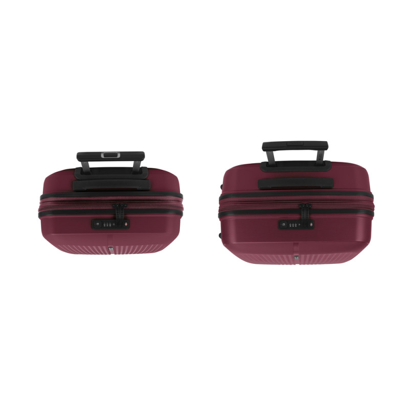 Juego de 2 maletas (Cabina y Mediana) rígidas y 4 ruedas dobles multidirección. Expandibles en todos los tamaños. Fabricadas en Polipropileno. Su interior esta compuesto por un forro de material reciclado, con doble separador y bolsllos. Cremallera de seguridad. Cerradura TSA. 10 años de garantía. Medidas sin y con expandible: Maleta Cabina: 40x55x22/25cm - Peso: 2,8 kg - Capacidad: 41,7/47,4 L. Maleta Mediana: 45x65x27/30 cm - Peso: 3,4 kg - Capacidad: 70/77,8 L.