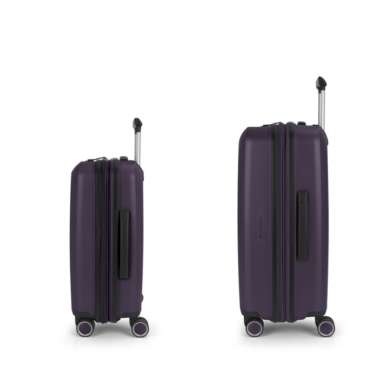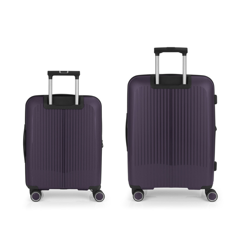 Juego de 2 maletas (Cabina y Mediana) rígidas y 4 ruedas dobles multidirección. Expandibles en todos los tamaños. Fabricadas en Polipropileno. Su interior esta compuesto por un forro de material reciclado, con doble separador y bolsllos. Cremallera de seguridad. Cerradura TSA. 10 años de garantía. Medidas sin y con expandible: Maleta Cabina: 40x55x22/25cm - Peso: 2,8 kg - Capacidad: 41,7/47,4 L. Maleta Mediana: 45x65x27/30 cm - Peso: 3,4 kg - Capacidad: 70/77,8 L.